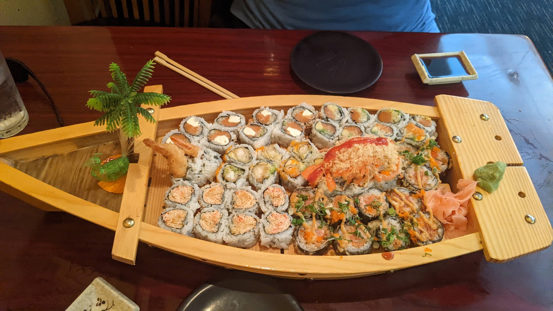 Read moreHave been wanting to try for a while and really glad we finally did, very pleasantly surprised. We got the lobster crab rangoon and veggie tempura to start off with. The rangoon were stuffed full with meat and delicious. The veggie tempura had a nice, crispy, light coating that wasn't greasy or overbearing, my only critique of it would be that I would have liked a little more variety in the vegetables, had mostly root vegetables. We got 6 rolls of sushi which we were surprised came with a sushi boat, not sure I could remember all of their names but the happy tuna and the krispy krab were our favorite. The volcano roll, which is usually our go-to favorite was a little underwhelming and not what we're used to, every place seems to prepare volcano rolls differently. Would probably try the Mike's special volcano roll next time to see if that's more like the volcano rolls we've liked in the past at other places. The atmosphere was nice, it's small without a ton of seating but they do have tables that are almost inside their own little cave, was very cozy. You can tell the decor is a little older, but the whole place was clean and free from any bad fish smell. The staff was super nice and attentive, they were constantly moving and taking turns filling up all the tables drinks. They got busy towards the end of our meal with pickup orders but it all seemed very well organized (we happened to be sitting right next to the register) and they still checked on their tables frequently. Very very happy with this place, definitely plan on coming back or...