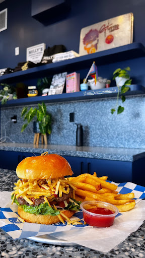 While we ate and waited for the food we had the wonderful opportunity of speaking to Milly's daughter who really added to my experience there. She told us her family's background and how far they have come to even be featured on Diners & Drive-Ins! She also told me that their family strives to support the community by hosting events and always changing the art within their shop with artists of the area. Can't wait to see what more Milly's does and to go back for a fulfilling breakfast as she did say that their breakfast empanadas was one of her...