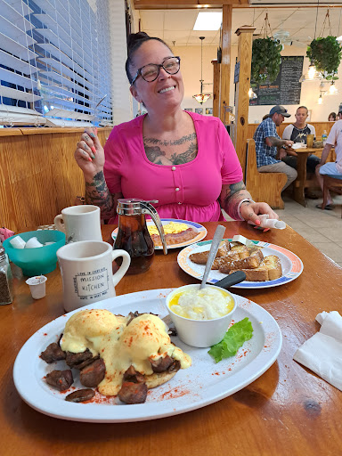 Read moreHubby and I had the pleasure to have breakfast at MISSION KITCHEN CAFE this morning. Not only did we have the joy of seeing friends and family, but what an amazing meal! Hubby ordered the country eggs benedict. He absolutely enjoyed, and ordered another side of hash browns for the second half (which he enjoyed for a late lunch after errands). I had the classic eggs benedict, probably my absolute fav breakfast, and it was amazing! I truly appreciated the taste of lemon in the sauce! Also, I appreciated the extra garnish (paprika?) - took a great meal up an extra notch. We will definitely be returning and can’t wait to enjoy...