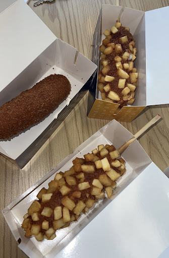 If you love Korean style corn dogs and mochi donuts, you will be too. They also serve Boba tea. The decor is really fun and the service was super friendly.