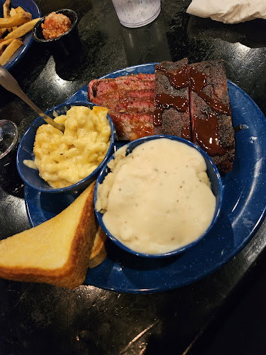 Ā Ā Ā Read moreWent for the first time on a Friday night between 7 and 7:30. There was only two of us so we got a table right away. We were provided with menu so we looked that over. Prices were not cheap but they were not extravagant either. We sat there for a while with no waiter so the man that set us down noticed and came over to the table. He took our drink order and our appetizer. Thankfully he advised us that there was a half order of onion rings, which is what we wanted for our appetizer, because it turned out the full order was humongous! Silverware was an issue as it took a while for them to get those to the table. After that the experience was wonderful. We ordered the meal with all the meats so we could try them all. The ribs, chicken and turkey were fantastic. The brisket was a little on the tough side but it tasted good. The pork was disappointing because it was shredded, bland and I would rather have had it sliced. The sides we had were salad, baked beans, french fries and the corn. Which were all good. They also provide a wide variety of sauces on the table. They had live music too that night and we really like that. Although the place gives the impression they a Blues place, this guy sang a mixture of country and southern rock which was fine. it was still good. All in all an...