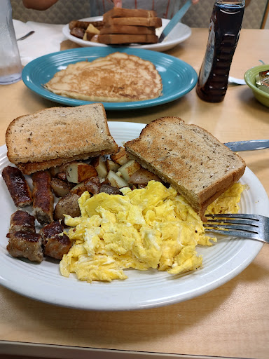 I tried this cafe as it is a locals diner right next to Ollie's. I always enjoy a local cafe. We were greeted by patrons enjoying a meal out front on bistro tables. We entered and seated ourselves but started to notice how dirty the place was. The floors appeared to not have been cleaned in days. Walls could use paint and the areas behind the counter need attention. Moving on to service, they were quick to attend and provided our drinks quickly. Unfortunately it took some time to receive our food. Seeing the cafe was fairly empty, I could not understand why it took a while for eggs and toast. As for the food, we did enjoy the breakfast. Scrambled eggs, home fries, sausage and toast. Food was plentiful and tasty. I gave this cafe a three star since the staff was friendly, and the food was good. Unfortunately due to how dirty the place was, I would be hesitant to return as this may be indicative and how clean the kitchen may be. I really wanted to give it high stars and enjoy the cafe, but they must work on...