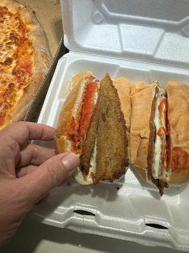 Read moreI'm giving 2 stars for the Pizza (Please do not call this New York Style Pizza...it is nothing like New York Pizza) because it's pretty good for the area I live in I've come to expect the cardboard crust I find at every Pizza place around here and we usually get our Pizza from Moschellos in Homosassa. But the terrible excuse for an Eggplant Parm hero/sub was a joke (see pic) the eggplant was sliced so thin there was no eggplant to be found, the horrible bread (also found everywhere in Florida) swallowed it and there was almost no cheese at all. There was probably about a dollars worth of eggplant on my $8.95 sandwich. The spinach roll was so thin and smushed and was so dry it was like it was a week old. The calzone would've been ok if there was cheese and ricotta in the whole thing and not just in the center, it was mostly pizza dough. I was very disappointed and would only recommend maybe stopping in for a pizza. I was tempted to grab a slice of the veggie pizza in the counter case until the girl behind the counter said there was ranch dressing on it...ranch dressing has no business being anywhere on a...