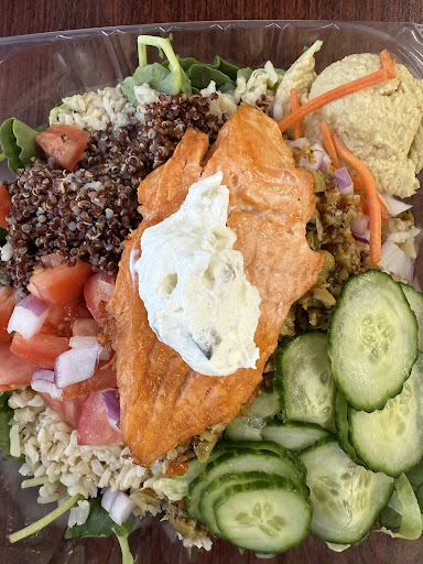 Starting by saying I know this place literally just opened like a week ago, and I’m sure they’re still working out some kinks. Overall this place is good! The bright white lighting and white walls everywhere kind of feel like a medical facility but at least the place is clean. I did wait for a couple minutes when I walked in to pick up my online order, the staff was standing around talking in their back kitchen until someone noticed me. The man who gave me my order was friendly, however I was put off by the fact that my order (of cold food) was just sitting on their cutting board counter probably for the 20 minutes it took me to get there after I left work. I know food doesn’t go bad right away, but I’d like my order to be cold when I pick it up and not a little past room temperature. They should keep their orders in a refrigerator until they’re picked up if it’s for cold food. Other than that the food is good. We tried the chicken Caesar wrap (which is huge and enough to share) and the fiesta chicken salad, dressing on the side. Can’t go wrong with these, pretty basic food items. Next time we’ll try some of their hot...
