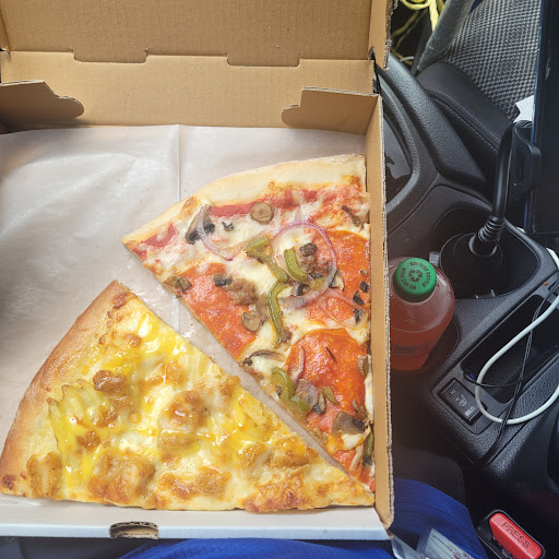 My family and I ate here the other day and I wasn't very impressed. Pizza was just ok, a little tough. The kind you have to rip apart rather than it tear apart. A little soggy /floppy in the middle too. The wings had good flavor but were definitely overcooked. The salad wasn't great but not the worst I've ever had. We got a garden salad, which was just iceburg, black ilives, tomatoes, red onion and croutons. The ranch tasted like it was Hidden Valley, which I'm not a fan of. They only do bottled drinks and charge $1.99 for a bottle of Aquafina water, not a big bottle either. The drinks, straight out of the fridge, weren't very cold and they don't have an ice machine or cups. Coukd have used a few more plates. They only gave us 5 plates for 5 of us to share a salad, pizza, wings and garlic bread and they're the cheapest paper, bending, leak through the bottom...