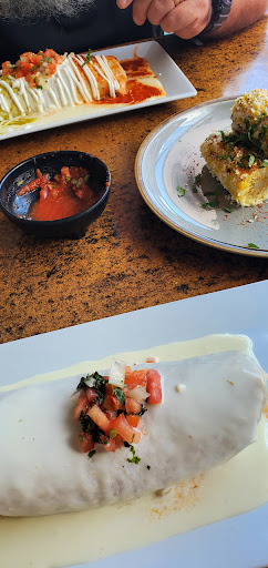 My husband ordered the Mexicano Burrito which was half beef/half chicken, but included a liberal amount of diced jalapeños and covered in the same queso Blanco but had a salsa Verde as well as a zesty red sauce. ANNNND...the if it couldn't get any better, we also ordered the Mexican Street Corn (Elote) and that was the perfect side to our burritos! It was grilled, had the perfect amount of seasonings and cheese. It definitely left us wanting MORE!!!! The staff was super friendly, our glasses were never empty and we WILL be returning soon to try their Carne asada which everyone was raving about!!!!