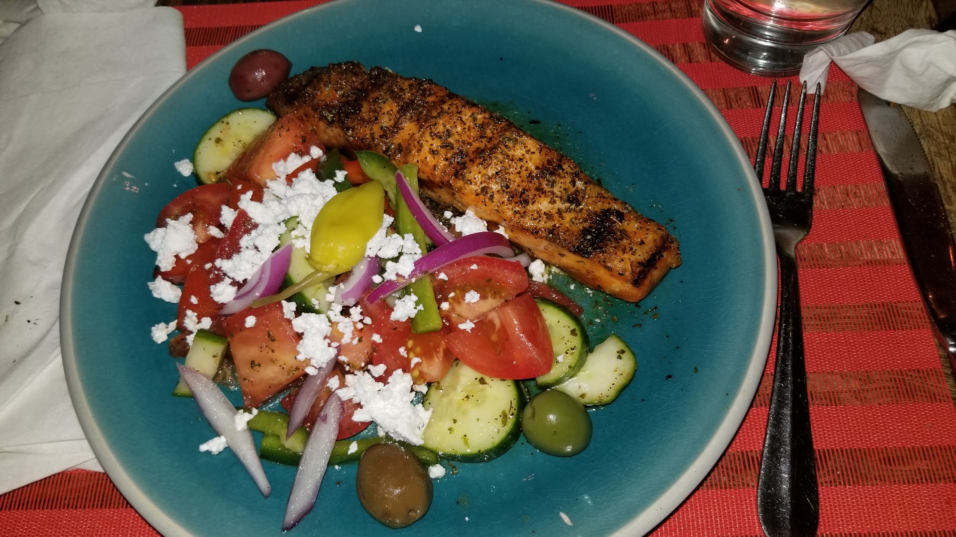 I had made a reservation and the table was ready upon arrival, which is always appreciated. We ordered a few appetizers to start and they are meant to be shared... but small size. Grilled octopus, stuffed grape leaves, hummus and also some boquerones (fresh anchovies). All nicely prepared and accompanied by grilled pita bread. Everything was really fresh and nicely seasoned but I would also have to say .... nothing outstanding.