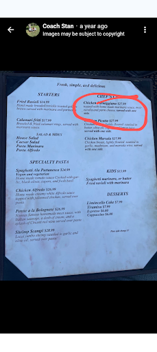 Read moreI had never been to Nonnas Trattoria even though I have lived in St Augustine for 36 years. I will never go again - ever as in never. We stood outside the door for over 10 minutes before we were even acknowledged with no one ahead of us. We finally receded with not a hello good evening nothing. Great service so far right? We opened our menus and decided what we wanted. As you can see by the picture below, the chicken dishes are served with a side. Does not specify what side just a side. When I ordered my chicken parmigiana I asked for a salad. The waitress asked me if I wanted red sauce or alfredo sauce for my parmigiana. I'm not really a marinara sauce type of person so I asked for alfredo. What I got was chicken parmigiana with red sauce and a a small side of penne pasta with alfredo sauce. I also got my salad. When the bill came, the person with whom I was having dinner was looking it over and said we were charged for a salad. I said well we should not have been. He calls the waitress over and he tells her and explains the situation. She looks me straight in the eye and said you asked for alfredo and I said yes I asked for alfredo sauce. She said well I gave it to you. I said no, you gave me penne with alfredo sauce. I did not ask for Penne. She argued with us for 5 minutes. I explained to her that the chicken parmigiana said it came with a side and that I asked for a salad as my side. Not only did she continue to argue with a customer who had spent over $100 for dinner, she never apologized and never offered to take the salad off the check. That is not good customer service. I know that my review is very long. But every bit of it needed to be said. I very really complain about anything restaurant. I wasn't complaining about the food I wasn't even complaining about the service I was complaining about the lack of courtesy on the part of the waitress and pointing out what it said on the menu. If you ever go there, and the waitress with the dark hair and glasses is your server remembered to be very explicit...