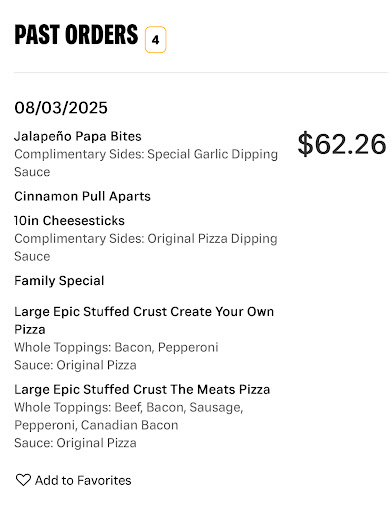 Ā Ā Ā Read moreif I could leave zero stars I absolutely would. Not only was both pizzas still raw but two very simple pizzas ordered off there family deal online. A meats pizza and a pepperoni and bacon pizza were both missing pepperoni. we had three other sides on our order and the sides were fine. we called and spoke to owner, asking if they were out of pepperoni and he said no we have pepperoni. so we explained That both pizzas were missing pepperoni and raw. he said he would refund and void the ticket and then put a note for us to get two pizzas another time. which we said we didnāt care about but appreciated the refund. go to look today. A $62 order he refunded $18⦠I will break it down for you. Jalepeno Bites $7.99, cheesesticks $8.99, cinnamon pull apart $8.99, family deal large 2 topping and large specialty both with epic stuff crust $32.99 equaling $58.46, $62.99 with tax. so my husband called and all he wanted to say is Iāll send you pizza now, which we donāt want! So then I called. Same thing. He kept telling me well your sides were fine And listed the prices of those but yet couldnāt look up the price of a family special with both epic stuffed crust would say well system only says $18 to refund for two pizzas. I said I will pay for the sides, I just wanted pizza refunded and I do not want pizza sent to me.but kept demanding that he deliver pizzas whenever Iām home, or come up and get 1,2,3,4 free pizzas or whatever I want. Just crazy youād rather give me 4 pizzas over a refund for the two I am asking for? Every time I tried to speak on the phone he wanted to cut me off every time and talk louder repeating himself a million times to where I had to be quiet. So finally lost my cool when I couldnāt be heard as a customer when he kept demanding that I listen to him then he started cussing. first off the pizza was absolutely disgusting, but does not come close to the disgusting human thatās the owner. Who also claims he doesnāt care about any reviews any customers leave. (Because I mentioned all his bad reviews lately) he then hung up on me. so here is his review, that I told him I would leave since he doesnāt care but maybe someone ordering from here will and will go to one of the other 10 pizza places right here in Murabella and have way better luck! Pictures added are proof of my order, each item cost when you order and...