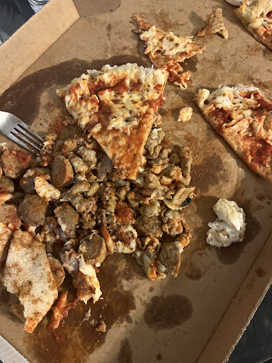 First off, showed up cold. Not ice cold but cold enough for me to notice when I touched the bottom of the box. Opened up said box anticipating the delicious smell of melted cheese and salty meat harmony and instead was greeted with the aroma of stale cardboard. Choose to ignore this problem (my fault for trusting a franchise to correctly make pizza, crazy I now realize).Grabbed a slice and half of the pizza came up with it. The cheese and crust didn’t tear apart like most pizzas do and I knew I was in trouble. Whatever though. I’ve eaten cold pizza before and I’m still here.