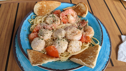 Read moreChill outdoor deck with lots of tables. Live band. Very casual. Family friendly. Able to accommodate big groups. Deceiving big and able to sit quickly with no wait. Friendly wait staff and service. Food was fast, served in baskets. Food was pretty good - Mahi Mahi tacos were good, blackened grouper was prepared well. French dip and burgers were good. Do not recommend the Filet mengion, it was not the best..more like a sirloin and overcooked. Beautiful sunset view from the deck. Cute fishing village with lots of beauty restaurants. Portions were small and prices were a little high given the quality of food. Disappointed with overall availability.. they had no plates, no potatoes, ran out of...