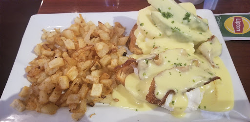 The menu in my opinion was lackluster. So, I asked for the special and it was eggs Benedict with shrimp and avocado. Now I'm not a shrimp fan but I figured let's give it a whirl. But to be on the safe side I had 1 bacon as well. It took a while for them to prepare this sensory delight. You see the picture right. Well forget it the pleasure is all in your mouth. Best eggs Benedict ever. Just simply beautiful. The sauce looked thick but was actually really light and buttery and decadent. And, when you had the bacon and the sauce it was just the perfectly necessary hint of salt. Yum yum.
