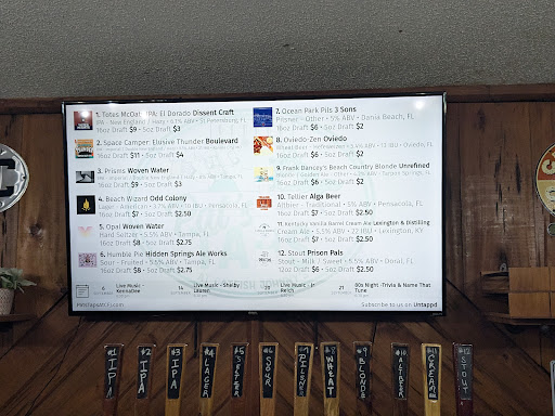 Our go-to spot for a great evening. Great craft beers with an emphasis on Florida/local beers and the rotating list keeps it interesting (they also have “regular” beer, hard cider, wine, soda, etc). Bartenders are good at recommending ones to try based on your likes. Flights are a fun way to try different beers without overdoing it. Liked the pulled pork nachos and Bavarian pretzel—cheese and mustard 👍, fish dip was good and came with an assortment of crackers and pretzels. Tacos were a lil spendy for us. You can always eat at CFJs before (or after if you pay attention to closing time). There are games for outside, including cornhole, and for cool nights there are heaters and a firepit. I’ve never enjoyed supporting a local...