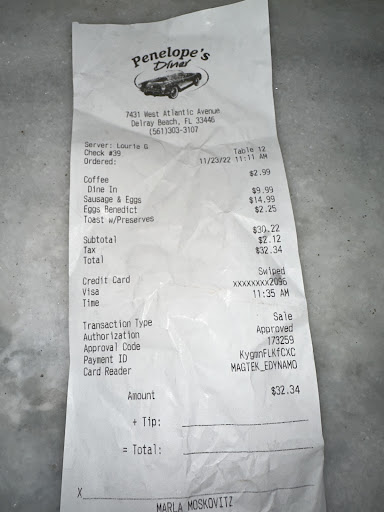 Read moreI decided to hop on line and leave a long overdue review for Penelope's Diner When I saw the negativity from some reviewers I had two thoughts; 1. Some people are never happy and, 2. you gotta be kidding me.