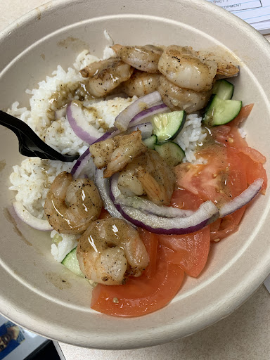 Initially I kept skipping over it because I’m not much of burger person and assumed that that is all they offered. However to my surprise they also have rice bowls and salads. I ended up getting the Mediterranean Shrimp Bowl. I choose this bowl over the Latin version simply because the Latin version had a cilantro sauce that I figured I wouldn’t like and didn’t want to chance trying it since I wasn’t in person. They also have these options with chicken and steak. The Mediterranean version came with a homemade lemon pepper dressing which I was super excited about that.