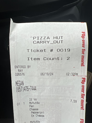 Read moreI ordered online a pizza and wings and was given an estimated time of 40 minutes, so after an hour past, I called the store and was told that they were waiting on doordash. I asked how long has it been sitting and was told 15 minutes, she asked if I wanted to cancel, I said no, it should be soon since it was waiting an hour already. 20 minutes later Doordash text me and says they are on the way. I said something to the driver that it had been waiting 15 minutes for them when I called. Imagine my surprise when the driver said he got there within 5 minutes of being notified by Pizza Hut! Eitherway, when the pizza and wings arrive, the pizza was to have buffalo sauce, there was no sauce, my wings were to be honey BBQ, they were spicy buffalo and could only eat 2!!!