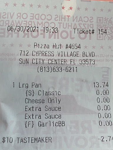 Read moreI'd give zero stars if that was possible. This is by far, hands down, the WORST Pizza Hut I've ever experienced and I've had them all over the world. I have tried them multiple times trying to think that something will change but it gets progressively worse. Tonight we order online where the website says for pick up the wait is 10-20 min. Knowing that this is always wrong (great start) we waited a little before going to pick up. 1.5 hours later the pizza still hadn't even been cooked. You may ask, why did you wait so long? That was because it took that long to pay then get back in line amongst the yelling customers demanding their money back. When we finally get to the front to ask about our pizza they first say that it's coming right out and to stand to the side. Then after asking again they say it hasn't been started yet. This is now over 2 hours from the time the order was placed online. There is no apology or explanation from management. Complete indifference. I can't understand how they are still in business except for the fact that there aren't many other options in that immediate area. I will NEVER go here again. Whomever owns the franchise, should read the comments on here and do something before you lose your business. That is if they care at all. Their staff...