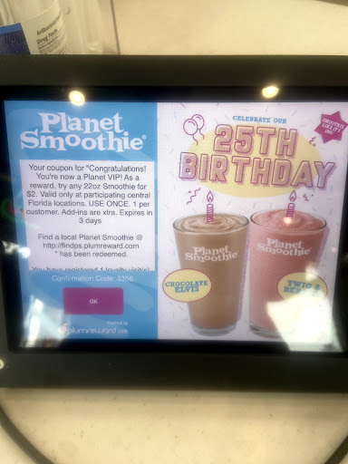 Employee was very condescending. I had a coupon for $2 22oz smoothie for the Planet Smoothie 25th Bday promotion. The employee said she had no idea what promotion I was talking about and didn't know what I wanted her to do. She called her manager on the phone.