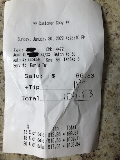 Read moreWe used to order from here at least once a week, spent AT LEAST $75/week here, but we never will again. The last 3 orders have been messed up, either missing an item or not prepared how we ordered it. We stopped eating here for the last couple months because of the last 2 orders being messed up but decided to try them again. This last time I placed a pick up order, got home and they put salsa on the chicken instead of cheese, and the steak was burnt when it was supposed to be medium rare. I called and asked them to fix the mistakes and to have it ready by the time I got back there in 15 minutes so I could hurry back and eat with my family. Got there, nothing was ready, the manager came out, eventually said he would replace the food, that I ordered the wrong thing. I did not order the wrong thing- the woman on the phone obviously did not listen or accidentally keyed in the wrong item. The manager then had our food remade and refunded my money, as I explained to him that my food was now sitting at home getting cold while I had to waste time & gas, a half hr driving because of their mistake, and then had to wait an additional 15 minutes for them to cook the food that they messed up. But then as we were walking out he said ma'am you have to pay for that again, I need your card. Uum, ok, YOU are the one who refunded the money? I never asked for a refund, I just wanted what we ordered and paid for! So I gave him my card again. He had the audacity to charge me $3 more, after them making the mistake on not only 1 item but TWO ITEMS, making me wait another 15 min, driving there and back, my food at home cold, and did not even compensate for any of it AND CHARGED ME MORE! We won't be back! Their prices have also increased & their portion sizes have went down. Sad because they had a really good thing going once upon a time. I'll drive out of town before I give them another penny of my money. Horrible...