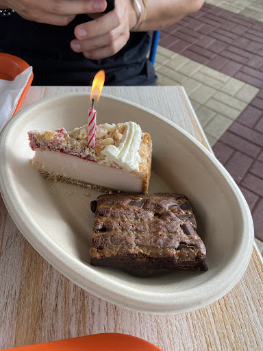 We were immediately greeted with smiles! The woman who made our bowls not only gave us generous portions (We both got a size large and it was the perfect entree), she was also very helpful in making tough topping decisions AND she also PAID FOR IT FOR ME. We were so appreciative!! While we were finishing up our meal and enjoying the outdoor seating, a man working there came over and brought us a birthday dessert cheesecake slice with a candle!