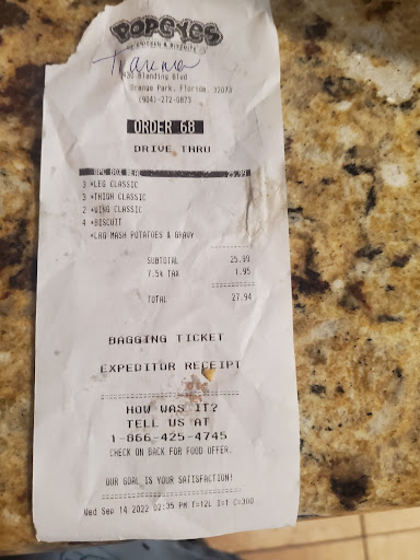 STOP GIVING THEM YOUR MONEY AND BUSINESS! We do not have to accept nasty customer service for a food we like! THERE are other chicken joints with people who WANT to work there! Because at the end of the day, they need our business! PERIODT! Lets stop letting people treat us BAD because they think we need their product! WE HAVE CHOICES!!!!!!! I am so angry!!! My husband went thru drive thru on 9/14/22 @ 235 pm, ordered an 8 pc with a large mashed potatoes. Paid $27 and was told to drive up to yellow pole and they would bring it out. He waited 15 minutes for our order and got home and it was fricking wrong! How? Why? I called the store at 430 Blanding Blvd and spoke with, so she said, district manager. TIANNA and my family will no longer order anything from this facility! Ever! I have never been treated so nasty and unprofessional by a customer service representative. Let's just say that this is a chicken joint that never has chicken ready and the customer service leaves a lot to be desired. I was told by Tianna to bring the order back to store to be reimbursed or replaced. I would not have had a problem with this had her TONE AND ATTITUDE been more respectful. She acted as if we stole the chicken, not waited for the wrong order. So, we should just take what we get and be happy. If we are not then WE can trek back up to the facility to ASK that they correct a mistake that THEY made. So now i am out of money, time and gas. Was that fricking chicken worth it? Even when I go there at 10 am, Opening hour, they are not able to produce product because "we are short staffed". That's the customers fault too. Done with them! 9/15/22 follow up: I received a call from Clay County Sheriff Dept. Because APPARENTLY Tianna felt threatened after she was nasty on phone with unprofessional customer service. I DIGRESS!!!!! if this Popeyes hires this caliber of employees, never open on time, excuses for not having chicken ready at a chicken joint, given 15 minures to make order and STILL GET IT WRONG!!! AND NASTY CUSTOMER SRRVICE ACTING AS IF THEY ARE DOING US A FAVOR BY PROVIDING CHICKEN THAT WE ARE FLIPPING PAYING FOR!!! I will not give them my MONEY...