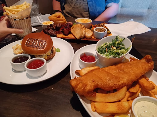 The Post is a quaint establishment, beautifully designed with a modern flair. Outdoor seating is abundant, and the indoor space features a well-stocked bar and tastefully arranged tables—spacious, inviting, and warmly decorated.