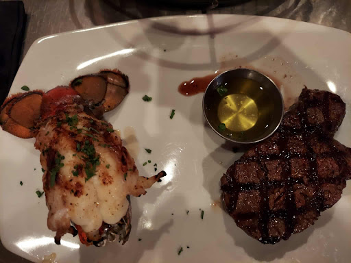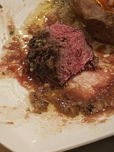 Before I comment on the food itself, I must say that the presentation (food on plate) was so underwhelming; I'm not a huge stickler on such things, but it was almost comical. Yes, the food ordered was on a plate, period. The wife's S&T (Filet and Lobster Tail) looked like two strangers avoiding each other on a subway train during the pandemic. My Ribeye and Double-Baked potato at least filled more of the smallish plate, but I'll explain why when I address the actual food.