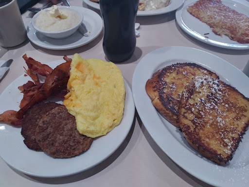 I opted for the classic brunch spread, which included cheese eggs, sausage, bacon, and cheese grits. Each dish was cooked to perfection. The cheese eggs were creamy and flavorful, while the sausage and bacon had that perfect crispy texture that I love. The cheese grits were a comforting addition, rich and satisfying, making them a standout on the plate.