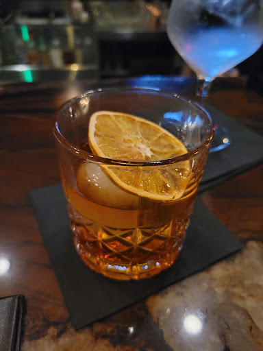 I started out with an old fashioned, My bartender Brent made it with single big piece of ice a cherry and a dehydrated orange slice, I notices he did use a fresh orange wedge to flavor the drink and rim eventhough it had the dehydrated garnish. I asked for Woodford as my go to and I have to say the bar tender did a very good job. it was well balanced, not to sweet not to bitter and no gasoline. It was quite good.