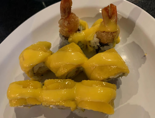 Pink dragon roll The tempura shrimp inside the roll tasted like it was fried 2x but refrigerated in between. It was INSANELY chewy. The batter also looked different. The ends with the shrimp tail, you could see allot of oil soaked into the batter. When I picked it up, sure enough it was oil logged. So the pink dragon roll was INEDIBLE!