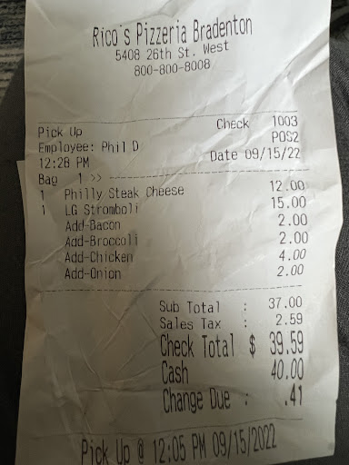 Not sure what happened with the friendly young man that was there before but itâs all changed and now Iâm prepared to move on again. I really like Dannyâs Pizza over on Manatee, but itâs just on the other side of town. Veronaâs on 53rd is OK as well but again itâs not in the neighborhood. Rico was in the neighborhood. I sent them a lot of business. In good conscience, I canât call them the best pizza around anymore.