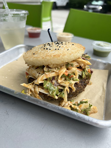 The food was beyond delicious and incredibly affordable. What I initially thought would be an $80 meal turned out to be only $39, which was a delightful surprise. I ordered the Yum Yum burger with a vegan patty, and my partner had the Ripe One, also on a veggie patty, without the turkey bacon. We also tried the sweet potato fries and yucca fries, accompanied by all their saucesâand oh my lord, every bite was heavenly. Everything was not only delicious but also healthy.