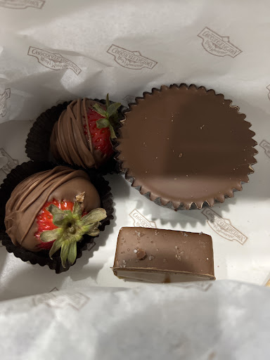 Read moreThe candy apple treats were adorable, I wish I would’ve gotten one . They have a wide variety of them and other treats . I tried their chocolate covered strawberries, a vanilla truffle , chocolate hazelnut and a peanut butter cup. We got a great deal on the strawberries because it was almost closing time . You can’t beat or resist a buy one get one free deal on chocolate strawberries. The chocolate coating has a firm shell then the chocolate just kind of melts in your mouth . The truffles were good but the two I ordered were topped with a little salt , if you don’t like that though they have a good variety of other ones . Over all the place was nice ,had an amazing selection of different treats , and was clean. The cashier was also very pleasant. I think they offer a little something for every sweet tooth in your family .The huge bear on the bench is really is super cute . It’s cool to find a chocolate shop with a wide selection of treats after a...