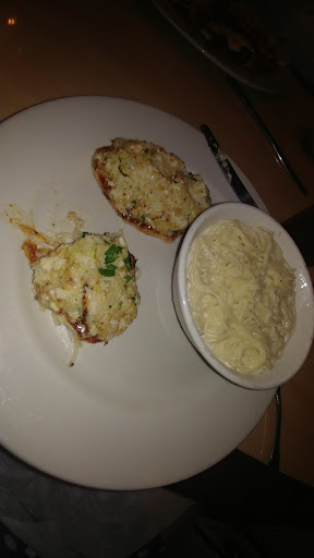 The rolls came out first and were served with a balsamic and olive oil mixture. The rolls were warm and soft with a nice flaky exterior. The salads came out next and were nothing special, (lettuce, onion and tomatoe),but the homemade blue cheese dressing was tangy and delicious.