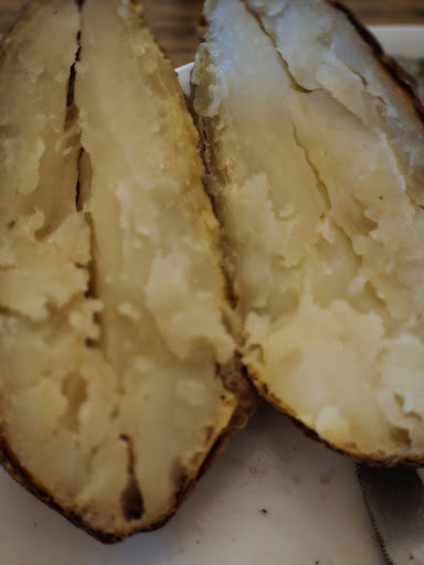 Well, our food came & I went home. My steak was supposed to be rare. It was med. My potato (notice it's singular - there was supposed to be 2) was OLD see pic! My dad did not get his slaw or a potato (the guy wasn't sure they had slaw left, so I told him a potato in case, but maybe he dodged a bullet) & his fish was horrible! The potato skins were old & only had cheese, no bacon. & they should not have been boxed with the fish! The whole meal was in 2 boxes... The whole meal was ruined. I could have maybe overlooked the multiples of rudeness if the food had at least been good. I'm heading back to CT. Had been looking forward to a good meal with my dad after he'd spent almost 2 months in the hospital & saw so many commercials making him want...