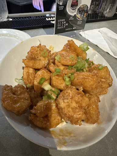 Atmosphere was...alright. It's supposed to be a 'sports bar'. Lots of TVs, displaying various sports, but the volume was off and there was no closed captions. Granted there wasn't an actual game on at the moment, so hopefully they have the volume ON during those events. I felt like if they're on, we ought to be able to know what's going on on them. Closed caption, please.