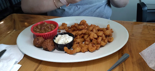 Read moreFirst time we went after reopening was great. Gator tail was awesome, crab cake platter was great along with the crab cake sandwich! We got our food fairly quickly quick was nice. Not very many people dining in so it was expected. The atmosphere is great if you’re into that sort of thing. We decided to go back again a week later and everything was awful. The service was lack luster, we waited almost an hour to get gator tail which was over cooked and gross, the waiters had giving us a warning about the overcooked gator and asked if we wanted them to remake it but after waiting for some time already we just suffered through it. We thought it was a fluke so we tried again a week later and the gator tail was perfect other then the size which was significantly smaller the the other times which was disappointing. Anyways, place has potential if they can get it together! Trying again because we love the atmosphere and dining outside right next to the river is appealing to me and my family! Staff very friendly! Bathroom needs a good cleaning, the dock outside could use some fresh decking but otherwise we...