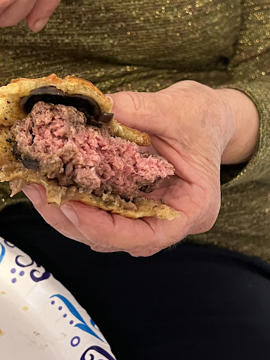 My wife’s Berger was supposed to be well done. As you can tell from the picture it’s rather than the Chinese flag. The mushrooms also tasted old and they were probably bumping up to the end of their usable shelflife. Probably best to sauté them so they would pass muster on the burger.
