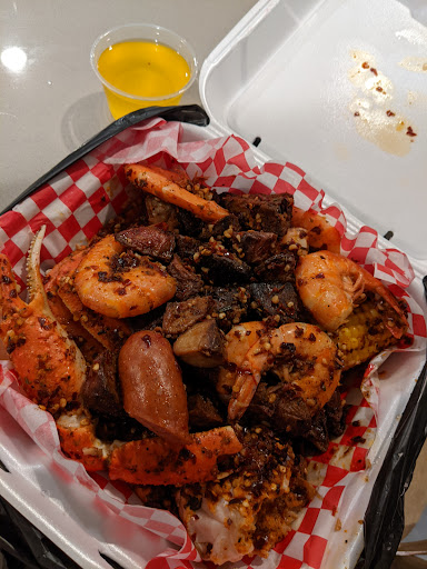 The host that night was super sweet and we enjoyed our food. We didn't have too wait long but we didn't receive our garlic bread or dressing with the salad. The low country boil itself had its pros and cons. Sadly, it was very greasy. So much oil was in the cut-up potatoes. I had to stop trying to eat them or else I get pure sick later. They didn't seem boiled either. I think ours were burnt because they were very dark. I guess the restaurant was trying to be unique but a simple boiled potato shouldn't be underestimated. While I always enjoy fresh garlic being used, they don't always correlate well when cooked with food fried. The garlic would have added more flavor if boiled.