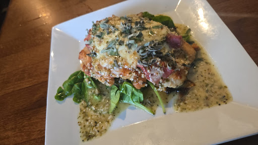 From the moment we were greeted at our seat I was off put by our wine glasses being taken from our table (we are a young couple, but old enough). Why have wine glasses at the table to remove them before even taking a drink order. Seemed strange, but I digress. Not having had any of the wines on the menu, I asked our server about the sweetness of one of the cabs and they were unable to answer... we order a bottle of wine. From the time we placed our order until our entree hit the table was probably about 40 minutes, we had wine and an app to keep us busy so I wasn't bothered, but we did notice it was taking some time. When the food was delivered, I was overall very unimpressed by the presentation. I ordered the sausage pesto rigatoni and it was essentially exactly how it sounds - sliced sausage, noodles, and sauce dumped on top. Maybe I was just overreacting and I might sound snauby saying this but this plate had zero presentation. It looks like something I just whipped up in my own kitchen in about 10 minutes of cooking... surely it must make up for it in taste? Wrong, the entire dish was bland and uninspired and I was finished eating after only a few bites... mind you I love food and am in no way a picky eater. It honestly just wasn't good, and was especially not good for a 40 minute window time. Not having eaten anything, my waiter offered a box and I accepted. I took a few more bites (okay, I was hungry and hostage for an hour) and our waiter returned to the table with the check and took the food and the box they just gave me. It's almost as if they knew I was unimpressed with the dish. Again, seemed pretty odd to me not asking if I still wanted the food and the box before taking it. Looking around while I ate I did notice a couple tables where apps were set aside hardly touched, and a couple next to us that didn't eat a thing, waited 15 minutes for their waiter to return, requested boxes and left. After coming home, and reading some recent reviews I wish I would have before, I am not surprised by my experience with the staff, wait, and food which ultimately left us both very...