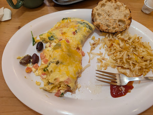 Read moreOur first visit. Waitress was very pleasant, but overwhelmed with crowd. My coffee was not good, funny taste.. Husband had decaf which was fine. Busboy got me a clean cup to share decaf. I had the special. Two bacon potato pancakes which were not cooked enough, chicken sausage was chewy With no flavor, scramble eggs and apples were good. Had to ask for scone which waitress said did not come with special although the large special sign said it did.