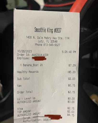 Read moreThis review is for the location on 1408 Dale Mabry Hwy, Lutz. I was there on Saturday May 14th at 6:45pm. What a horrible place.. DO NOT WASTE YOUR MONEY OR TIME THERE! Horrible experience, whoever is running that place should get fired and if it’s the owner then Smoothie King should get rid of that franchisee. No sense of customer service whatsoever, last time I checked the smoothies are not free, can you say hi or welcome or smile? or even acknowledge the customers? Ridiculous! Not only that but I see the girl going back to the fruits bar and ice after she already had made the smoothie because she didn’t make enough but then the second time comes out a different color so I asked “what’s going on?” All she said was “recipes are down”.. she pours the different color smoothie on top of the one already served.. who does that? So again I had to tell her to mix it.. I mean come on! In the end she just puts the smoothie on the counter no apology, nothing!! Who hires these people? the other guy on his iPad the entire time. I will never go there again there are way better smoothie kings around the area! Either get new management or...