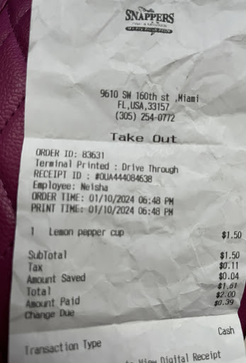 Read moreI was in the area doing some dental work and wanted some seafood so I found Snappers. I’ve never been to this chain before and let me tell you, the girl taking my order through the drive thru was rude. Besides the fact there was a truck running on the side bc of some construction to the road, so after the 3rd time of trying to order I had to scream bc she kept saying she couldn’t hear me. I asked if there was a meal with shrimp and rice , she had an attitude the whole time of me asking 1 question. For future customer service I would suggest shutting off the mic before yelling DAMN so the person ordering decides to never try this place again. Spent $20 on blan fries , shrimp was ok and rice was some Cajun rice with some slim crab meat and a couple...