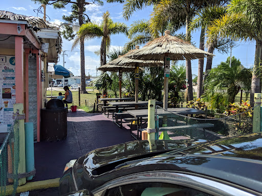 The Sno Hut is a lovely spot to visit and grab a bite when it's sunny out and you're jonesin' for some good old American food and treats. While I'm particularly fond of their Italian ice selection, they also have gelati, sno cones, and soft serve. While the food selection is nothing compared to their dozens of options for sweet snacks, I always grab a hot dogs and some of their fresh fries cooked in peanut oil. Delicious! The venue is small, with a walk-up window and outdoor seating. The outdoor seating has individual covering, but I wouldn't recommend it for rainy weather. Overall, the small building and table set-up is very tropical and fun, with palm trees, grass awnings, and bright colors. It fits in with the Florida atmosphere of all of Merritt Island. I would definitely recommend this for...