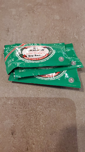 I got my food 15 min later, nothing at all was ready before the 15 min. When I got my food, the other server asked me if I wanted anything else. I ordered eel sauce and spicy mayo, which came in 1.5 oz plastic containers filled half way. Later I asked her for soy sauce and she brought me 3 to go packets.