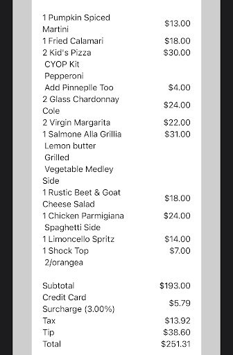 ………. To clarify your information… we DID have a reservation for 6PM and it was a party of 5, two of which were children. I even came IN to the restaurant to make it with my son and told the hostess it was his 8th birthday. I didn’t even order a main dish since the two Kids pizzas were too much food for them so we shared. The cake fee could have been mentioned when I came IN person to reserve a table for us 5. The calamari should have been removed from the bill. On your previous menu you had grilled squid…not just the fried calamari…. That was what I was trying to ask the waiter, but again, he was weeded and not very present with us. I get times can be busy, I’ve been a server myself for over 10 years… if you’re that busy on a Thursday evening at 6pm, schedule more staff. Thanks for your reply, just wanted to correct your misinformation on the review. So for two adult meals and two children who ordered basic pizzas and a few alcoholic beverages… and a little boy who didn’t get his birthday song until we got home… your bill was expensive. Goodluck with your business...