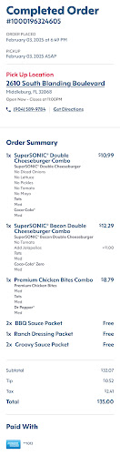 Read moreBrittany saved this visit to this Sonic. In the past, I have received cold tots from this location. So, when I ordered, I asked for the tots to be "out of the vat" meaning I want them straight out of the oil so they would be hot and fresh. I was told ok. I also asked for mayonnaise to save the server extra steps and to not have to make an extra trip. The order taker even repeated the words "packs of mayonnaise" back to me. The food was brought out to me and Brittany asked if I would like anything else. Brittany had not put the food in the bag so I looked for the mayonnaise and found none. I checked the tots, found out they were cold and sent them back. Brittany was very polite and got the mayonnaise and hot tots out to me as fast as she could. I have not gotten food from this location for years (I would only get slushies since it is hard to mess those up) because of how much they have messed up my food in the past. I'll have to think before going back. Brittany is the reason I am giving 3 stars...