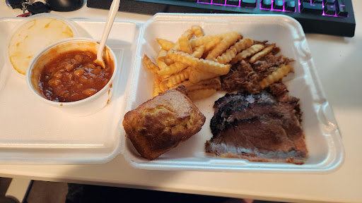 Read moreThere is a BBQ place in Syracuse NY called Dinosaur BBQ. If you order the combo ribs, brisket, and pulled pork dinner with the 2 sides and cornbread you will receive a platter of food so big it will make you feel like a little kid in comparison. (around $20) It's embarrassing to be in front of it. You feel like a pig yourself... REALLY. PLUS everything down to the fries and cornbread is scratch-made from homegrown recipes and meats smoked outside in plain sight, not boiled, baked and liquid smoke added. Awarded best in USA. A tough act to follow. So I tried to order a similar meal from this joint today. It took two meals to make this combo around $30. The baby back ribs appeared to come from a baby pig. I have never seen ribs this small. At first I thought it was a McRib out of the bun, but then I seen the mini bones. Boiled and I can still taste the liquid smoke. The pulled pork was dry and shredded so small it could have been anything. The dry brisket was chewy and lacked the real smoked flavor "14 hours" would have given it. Fries were undercooked from frozen, Coleslaw fine chopped, wet and sweet, cornbread was sweet corn CAKE and the beans were sweet enough be dessert. Portions are incredibly small for the price. I am still hungry. What a joke. $36 down the tubes. Don't waste your time. Don't trust all the cars in their lot, this place is another joke, just like Sonny's. You will get better BBQ from the mom and pop places and roadside stands, if you dare. Unless you are like the rest of the crowd chanting "If it ain't sweet,...