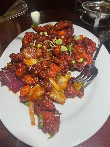 We ordered a couple of dishes and everything was mediocre: For the appetizers, we started with chili chicken dry. It was one of the most disappointing chili chickens ever. The spices/masala were point on but not the chicken itself. The chicken was rubbery and extremely hard. This type of texture you get when the chicken has been double-fried a couple of hours ago and the chef just tosses it in the spices/masala when one places the order. Then came the lamb seekh kebab. We had one bite and just sent it back. I don't know how they can be proud to serve a seekh kebab with a hamburger texture. It felt like eating a hamburger in a kebab form. A seekh kebab has a mincemeat texture and is not mushy meat. For the mains, we ordered butter chicken, saag paneer, and aloo gobi. I am a butter chicken lover and never have I ever spent time searching for curry in the butter chicken. It was loaded with colored chicken pieces (not sure why certain restaurants like to add color to their chicken? Let the meat speak for itself) and the curry was nowhere to be found. We had to ask for a side curry order just so we can enjoy rice and some curry. Saag paneer was decent. We asked for a medium one; medium means a medium level of spice and not a medium level of salt. Low salt made this dish just ok. Aloo gobi - who serves aloo gobi with almost raw aloos (potatoes). The potatoes were not cooked for long. Garlic naan and butter naan were awesome! We really enjoyed the naans.