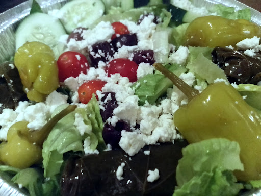 We started with the salad and it was awesome. It was full of feta cheese, cucumbers, tomatoes ,Kalamata Olives, Pepperoncini Peppers and stuffed grape leaves. The Greek Dressing was a perfect match and not overly tangy or sweet.